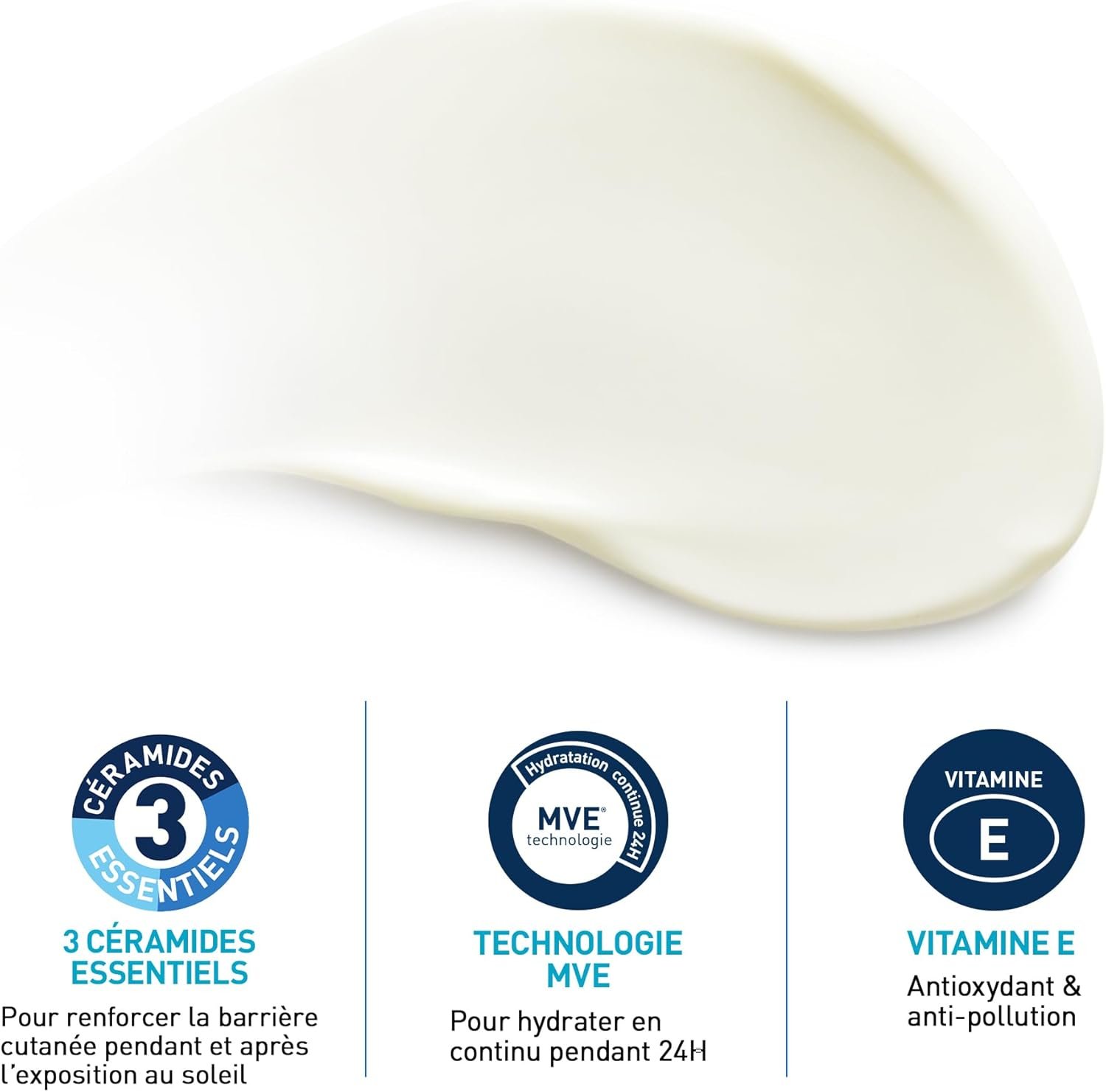- FORMULE HYDRATANTE 24H : Enrichie aux 3 céramides essentiels, en vitamine E et grâce à la technologie MVE, cette crème solaire renforce la barrière cutanée pendant et après l’exposition