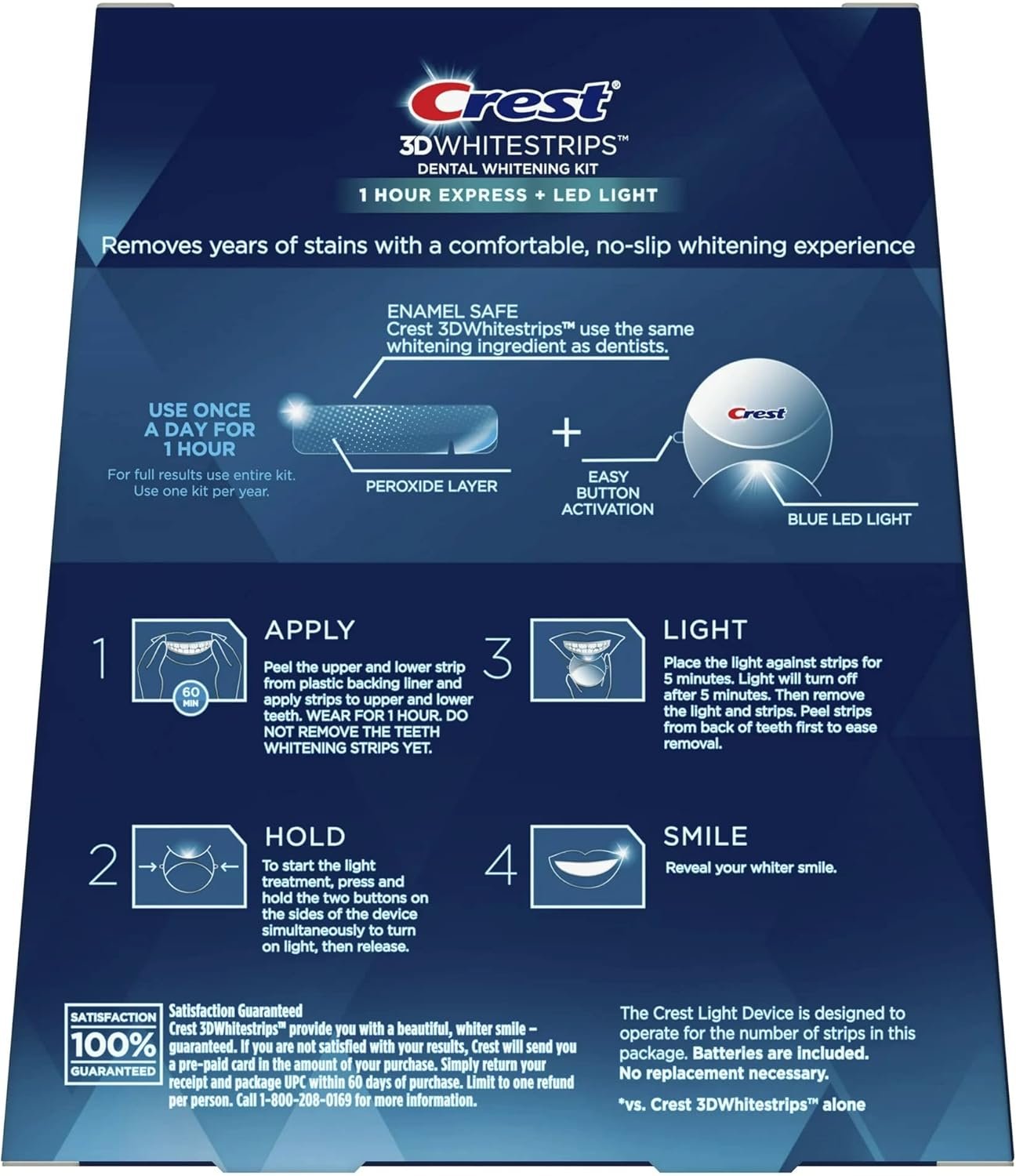 - Crest 3DWhitestrips 1 Hour Express + LED Light Teeth Whitening Kit, 19 Treatments
