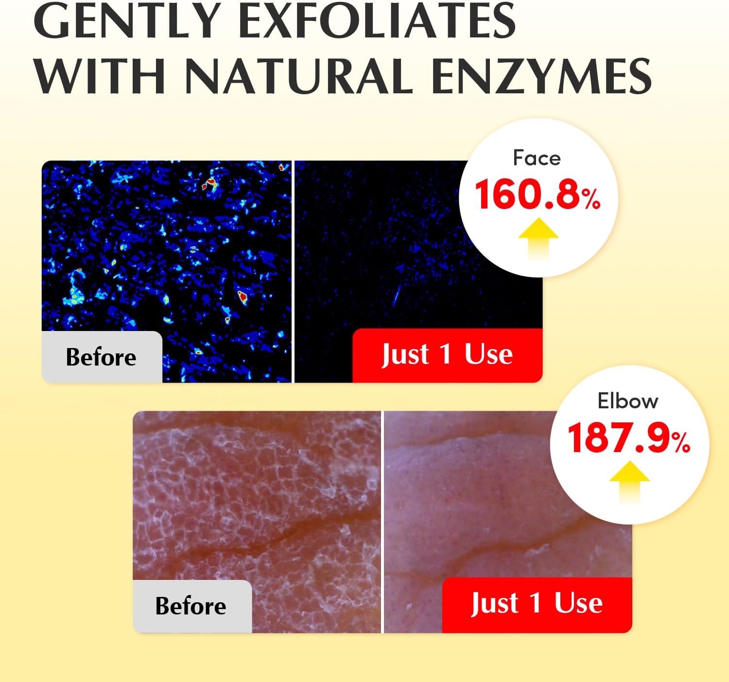 تقشير يومي لطيف مع إنزيم البروميلين: يعمل البروميلين المستخلص من الأناناس على إذابة خلايا الجلد الميتة بلطف وتنعيم ملمس البشرة غير المتجانس دون تهيج، مما يهيئ البشرة لامتصاص أفضل.