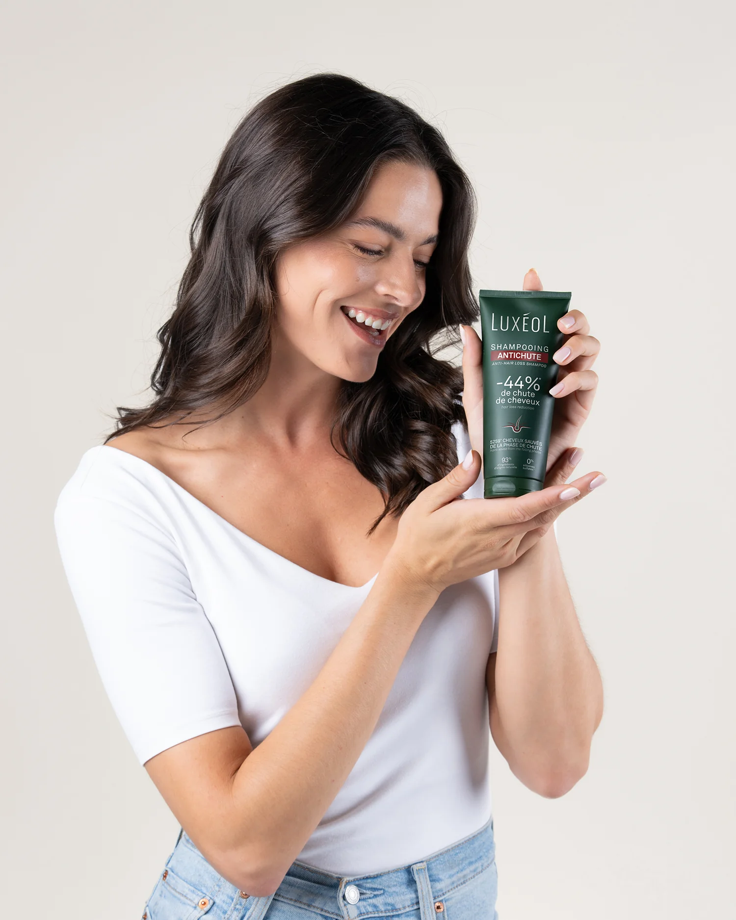 Découvrez le Shampooing Antichute Luxéol, enrichi en extrait de kératine obtenu à partir d’un procédé de fabrication breveté. Ce shampooing, à la texture onctueuse, diminue la chute de cheveux de 44%*. Il renforce les cheveux, les rendant moins cassants et plus résistants, tout en leur procurant plus de volume et de brillance, pour des cheveux revitalisés.