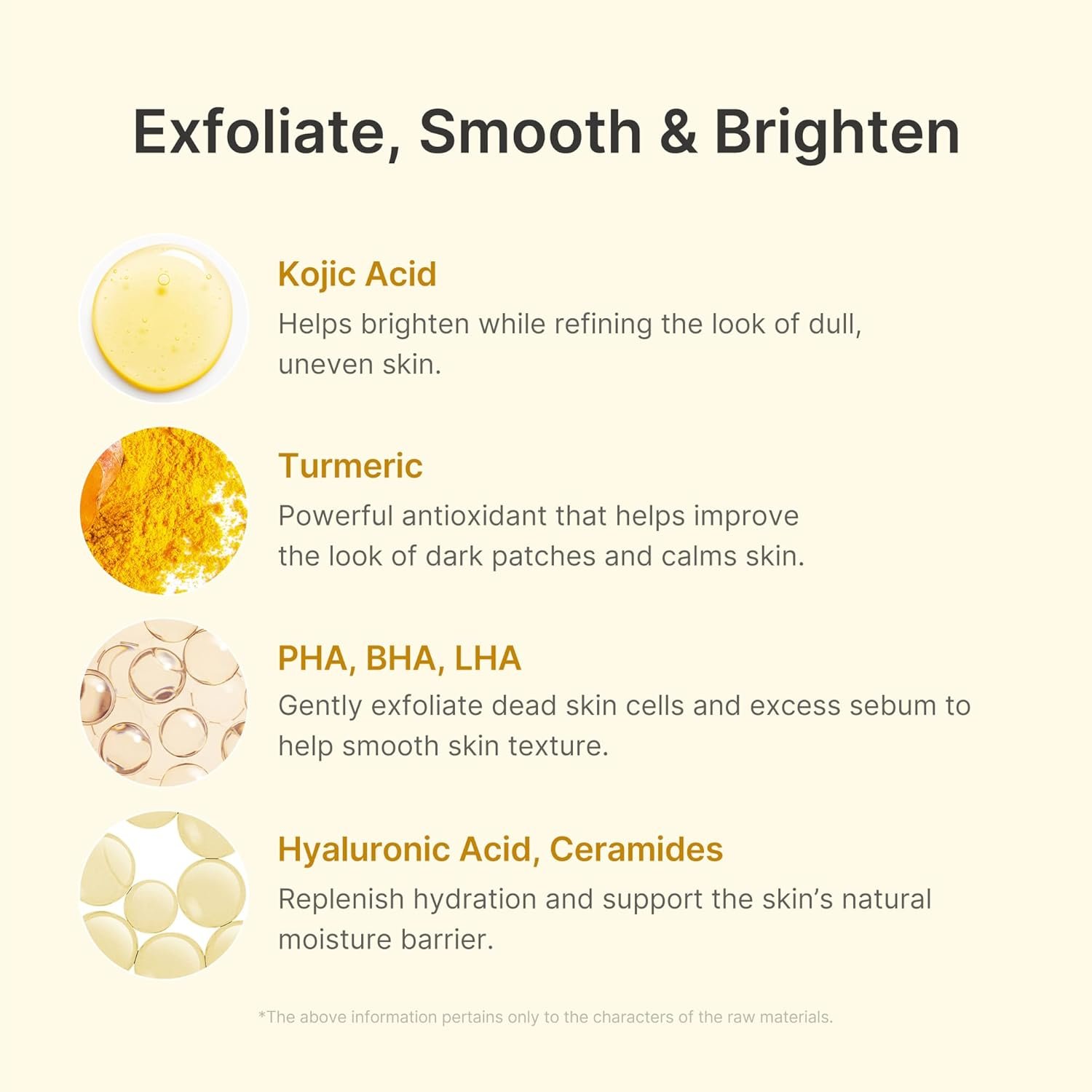 مقشر الجسم ميدي كيوب بحمض الكوجيك والكركم | سيروم لطيف لتفتيح وتقشير الجسم مع أحماض بيتا هيدروكسي (BHA) وحمض لوريل هيدروكسي (LHA) وحمض بولي هيدروكسي (PHA) لإزالة خلايا الجلد الميتة، وتوحيد لون البشرة، وتقليل الإفرازات الدهنية الزائدة.