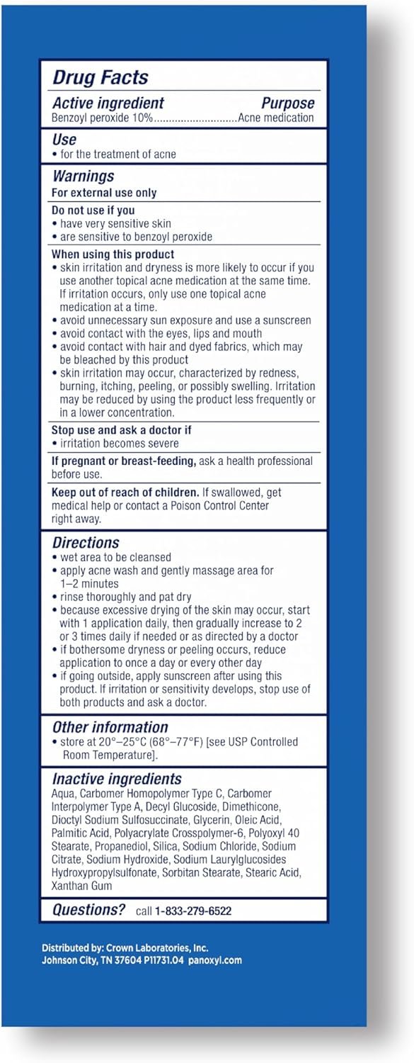 PanOxyl Acne Foaming Wash Benzoyl Peroxide 10% Maximum Strength Antimicrobial, 5.5 Oz